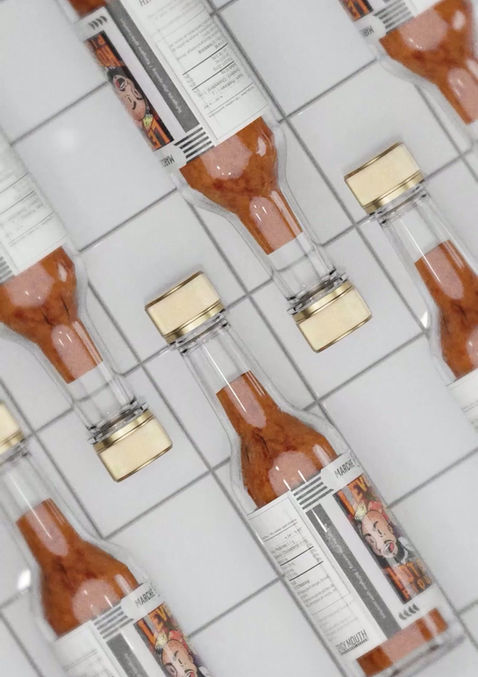 Chef had many ideas over the years for products he wanted to launch but one of the first was to bring to life a series of hot sauces that had been refined over the past years. So we crafted the Spicy Mouth Entertainment System. So far consisting of 3 hot sauces the Design and packaging of these sauces are based around nostalgic experiences that set the tongue and heart a blaze.